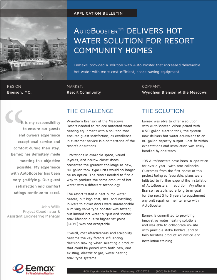 David Calkins | Product Manager The Challenge: Wyndham Branson at the Meadows Resort needed to replace outdated water heating equipment […]